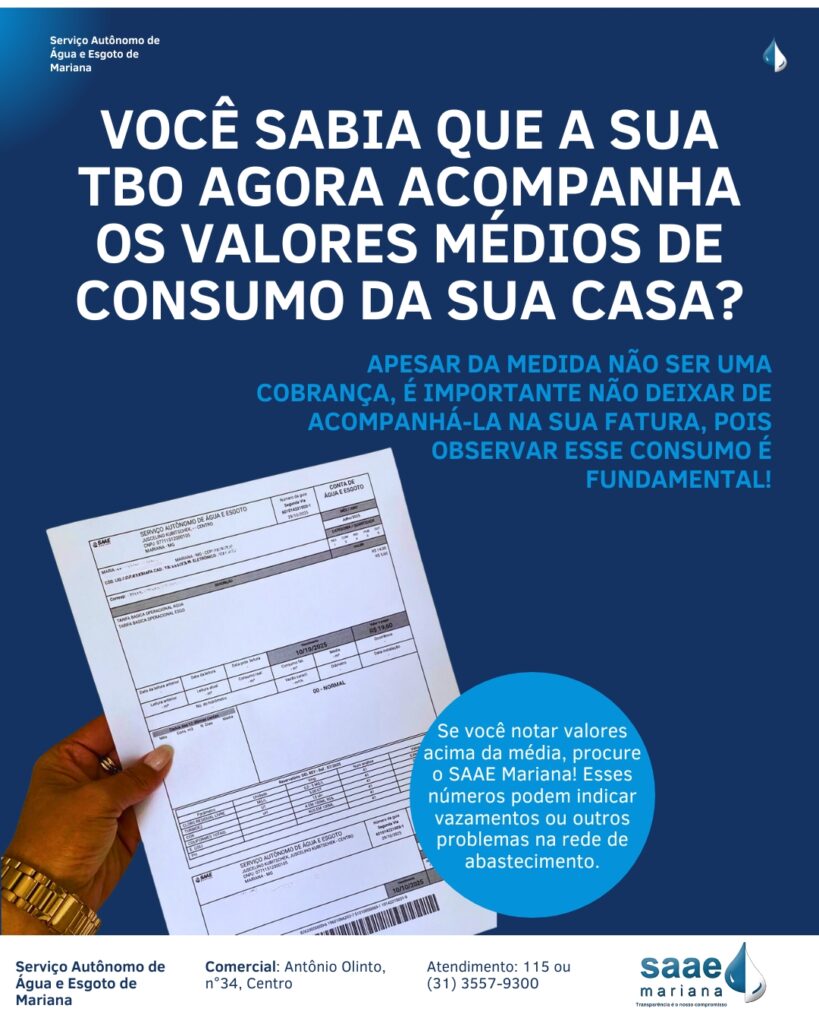SAAE Mariana realiza campanha para que moradores acompanhem a Tarifa Básica Operacional (TBO)