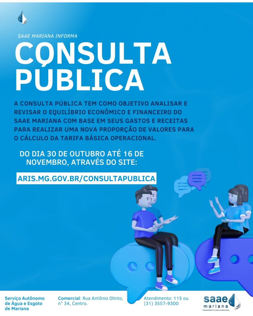 ARIS-MG abre Consulta Pública sobre revisão tarifária do SAAE Mariana