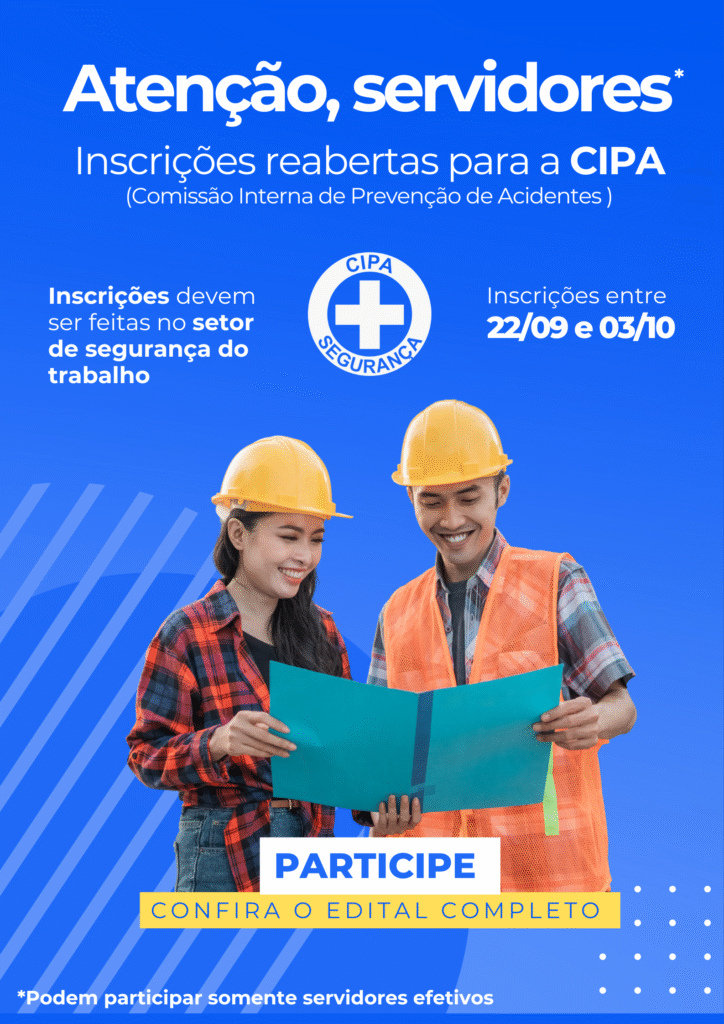 O Serviço Autônomo de Água e Esgoto (SAAE) de Mariana publicou novamente o edital para a eleição dos membros da Comissão Interna de Prevenção de Acidentes (CIPA), gestão 2025/2026. A comissão tem como objetivo fortalecer a segurança e a saúde no ambiente de trabalho, em conformidade com a Norma Regulamentadora NR-5. A CIPA será composta […]