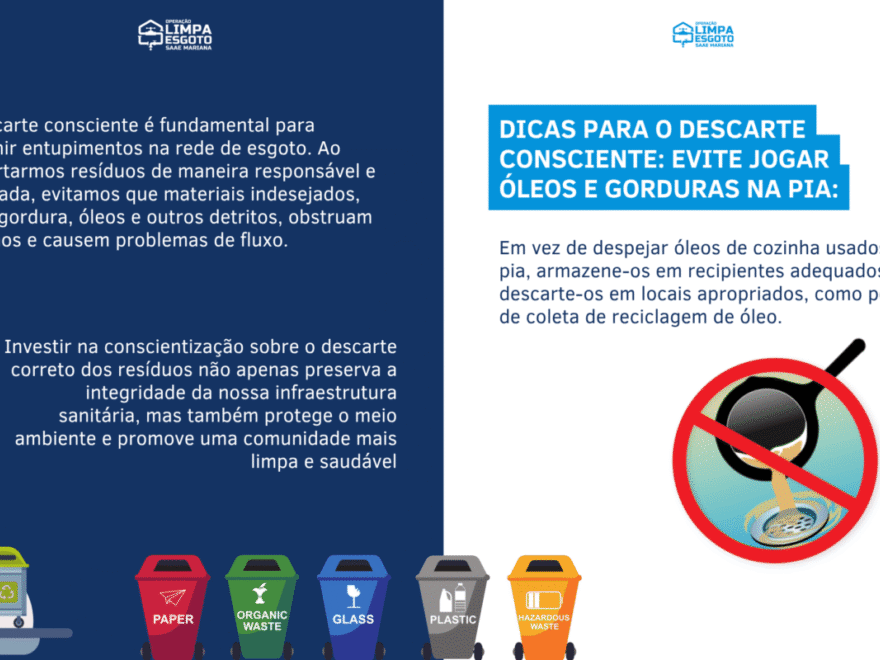 A obstrução das redes de esgoto causa diversos transtornos ao saneamento básico e à qualidade de vida da população. O descarte incorreto de lixo e de óleos nas redes coletoras impede a passagem adequada dos dejetos sanitários, gerando impactos significativos ao meio ambiente e graves problemas à saúde pública. Resíduos sólidos jogados incorretamente nas tubulações […]